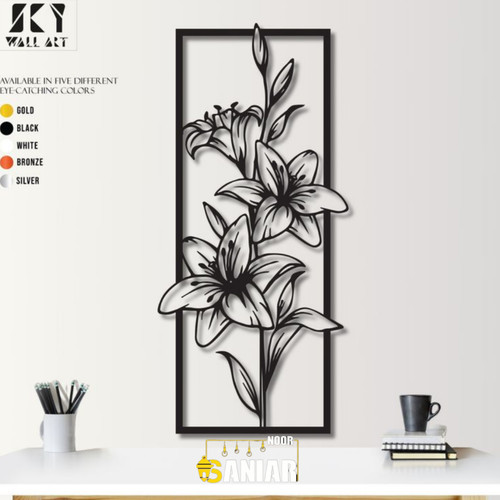 تابلو دکوراتیو طرح گل لیلیوم طلایی (لوکس و مدرن برای پذیرایی و اتاق خواب)