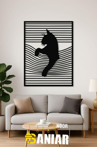 تابلو دکوراتیو مدرن طرح گربه و خطوط انتزاعی