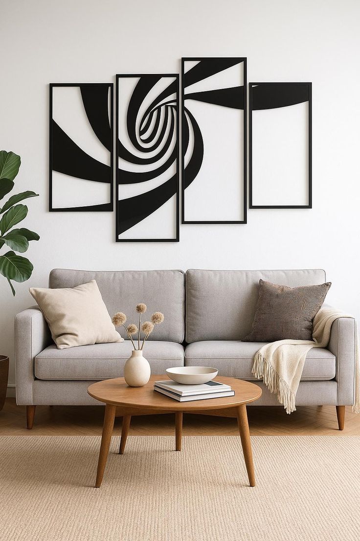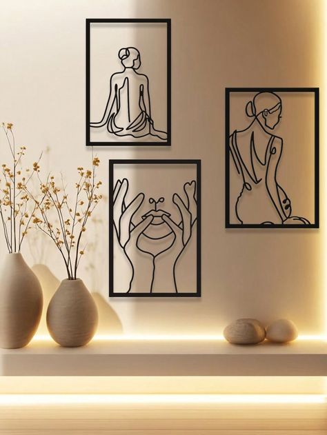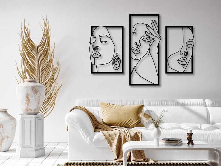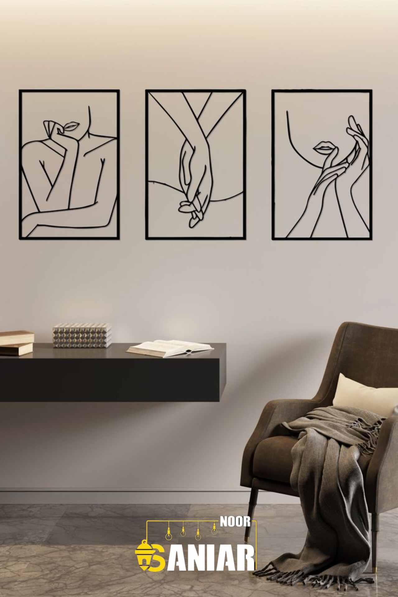 ست تابلو دیواری فلزی لیزری سهتکه | طرح لاینآرت مینیمال