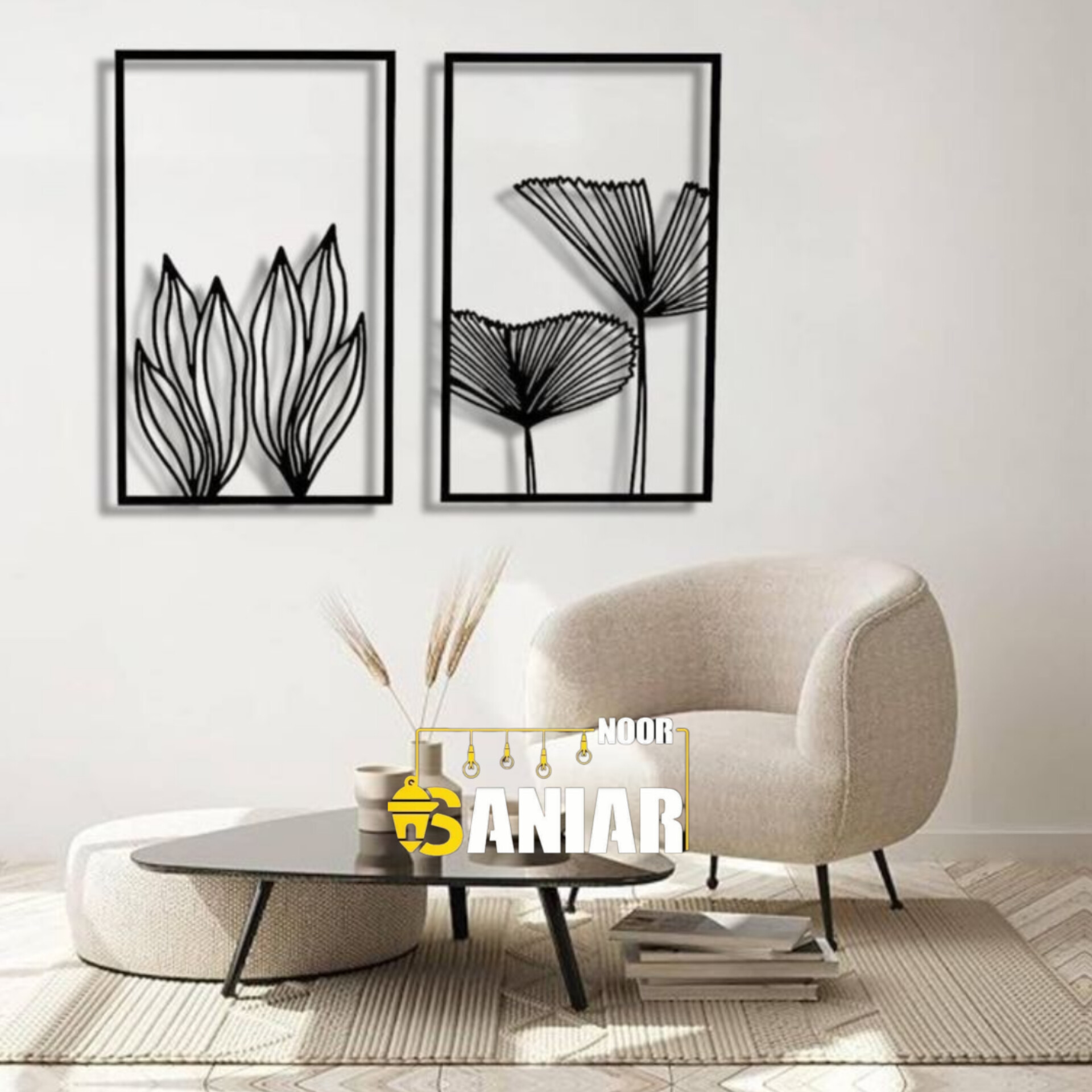 ست ۲ تایی تابلو دکوراتیو طرح "برگهای مدرن" (مناسب برای چیدمان کنار مبل و اتاق نشیمن)