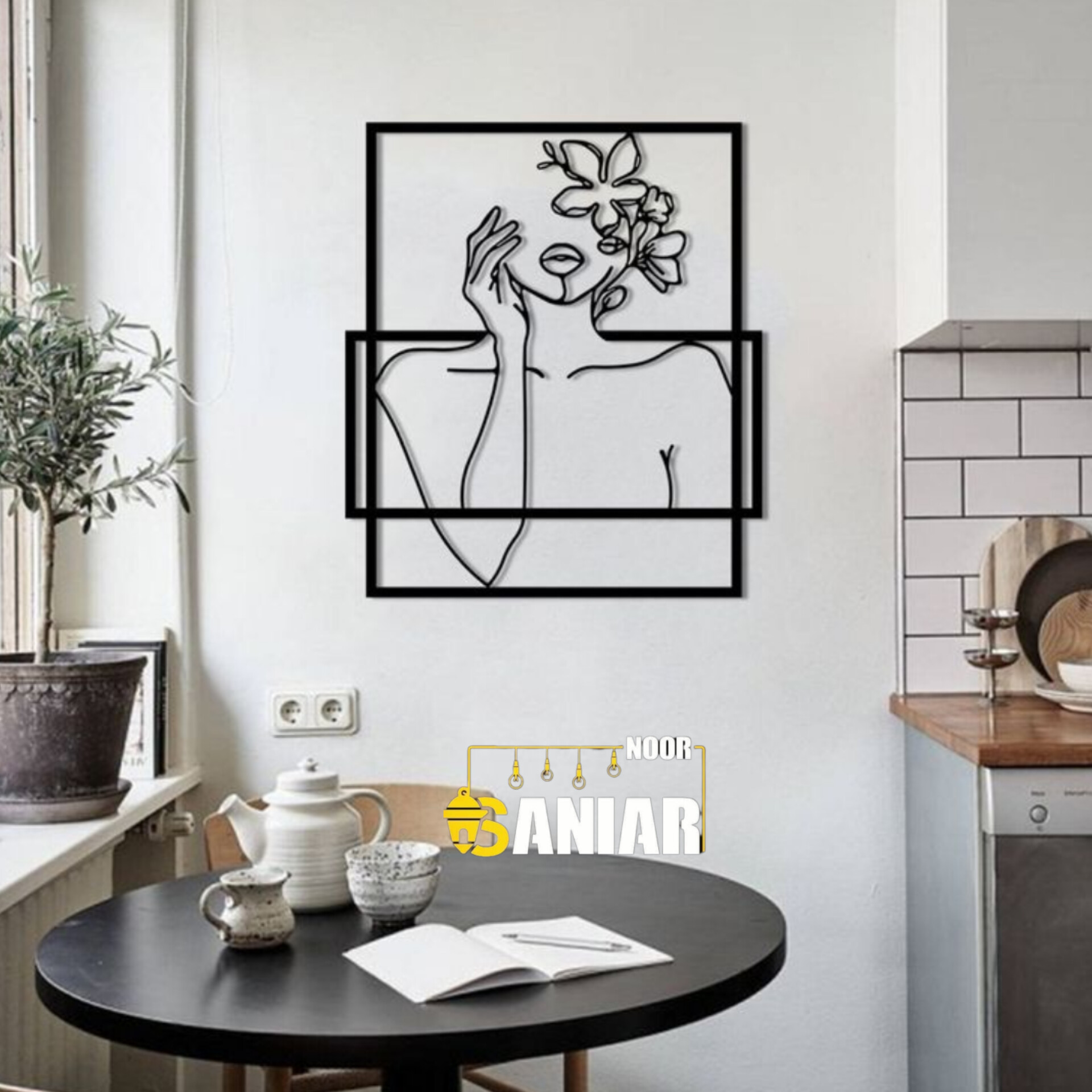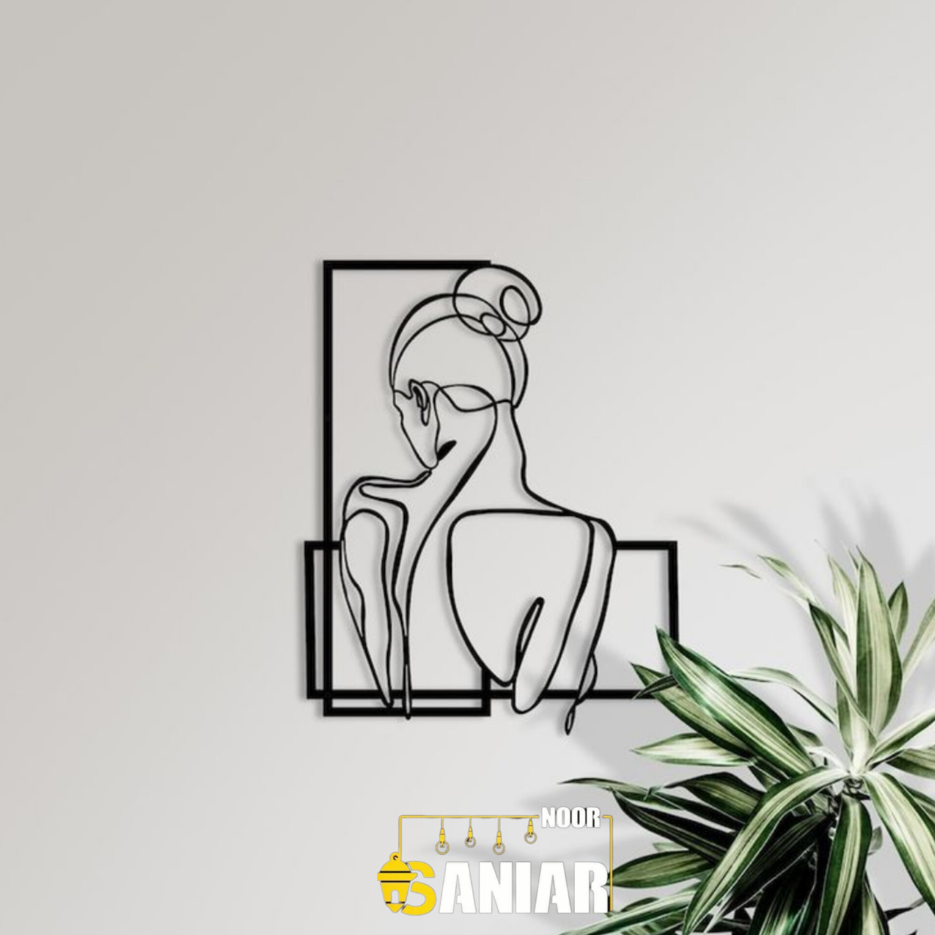 تابلو دیواری فلزی چهره زن | طراحی هنری خطی با سبک مدرن