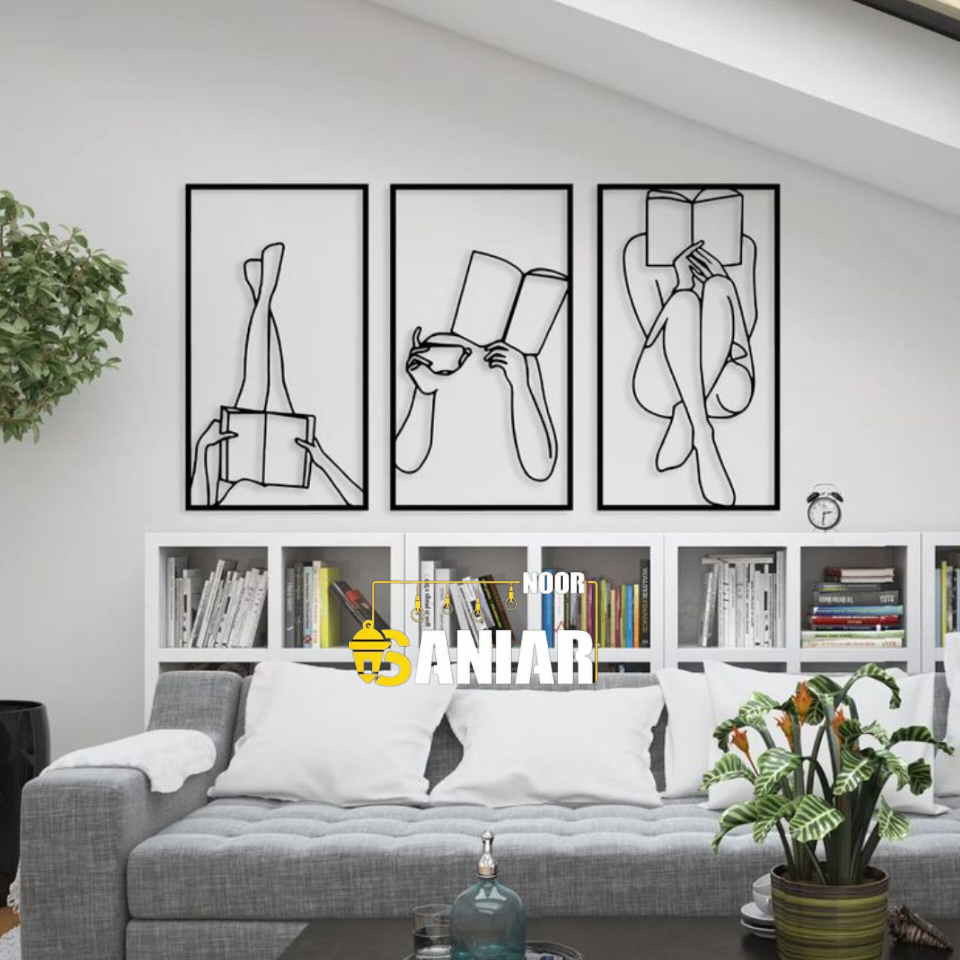ست ۳ تکه تابلو دکوراتیو طرح "کنج مطالعه" (لاینآرت مدرن برای اتاق خواب و کتابخانه)
