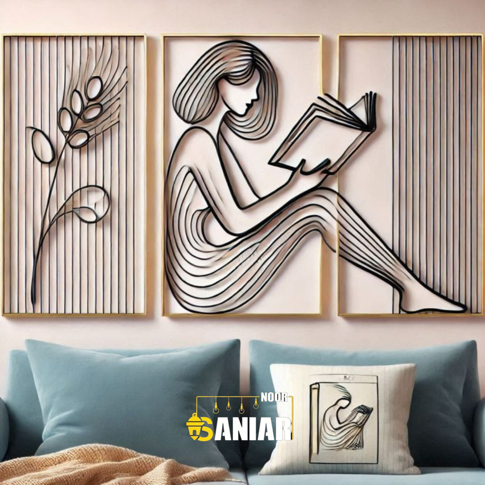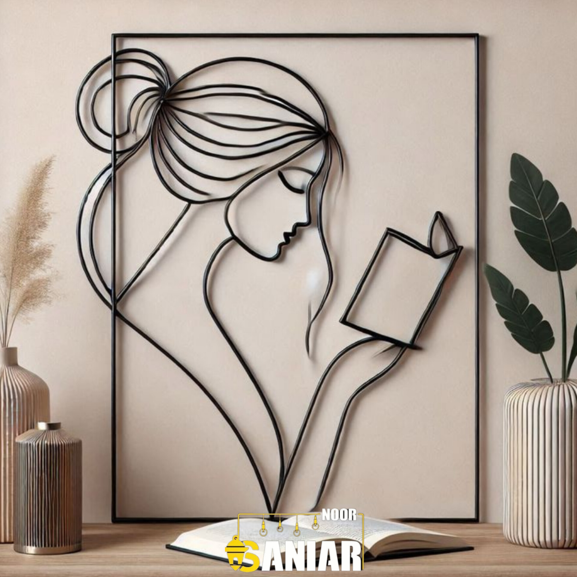 تابلو دکوراتیو لاینآرت طرح دختر کتابخوان (ویژه فضای مطالعه و اتاق خواب)