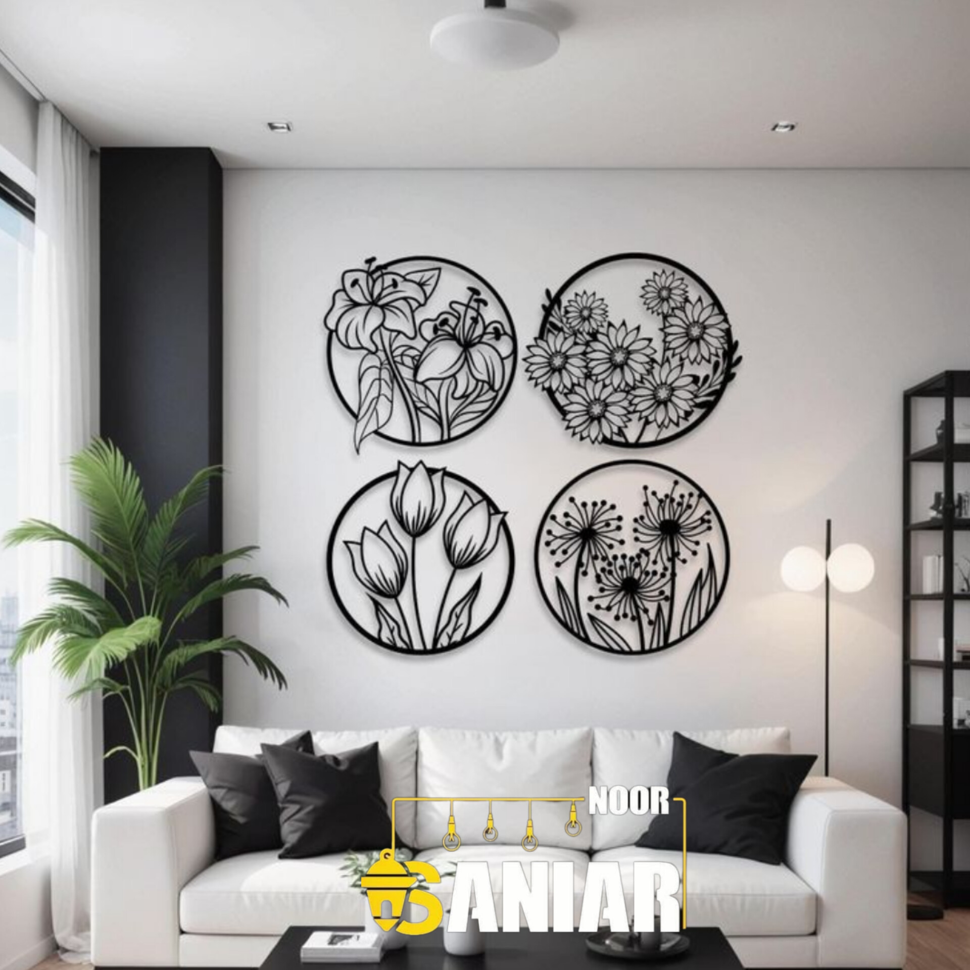 تابلو لیزری دیواری چهارتکه دایرهای | طراحی مدرن و متعادل