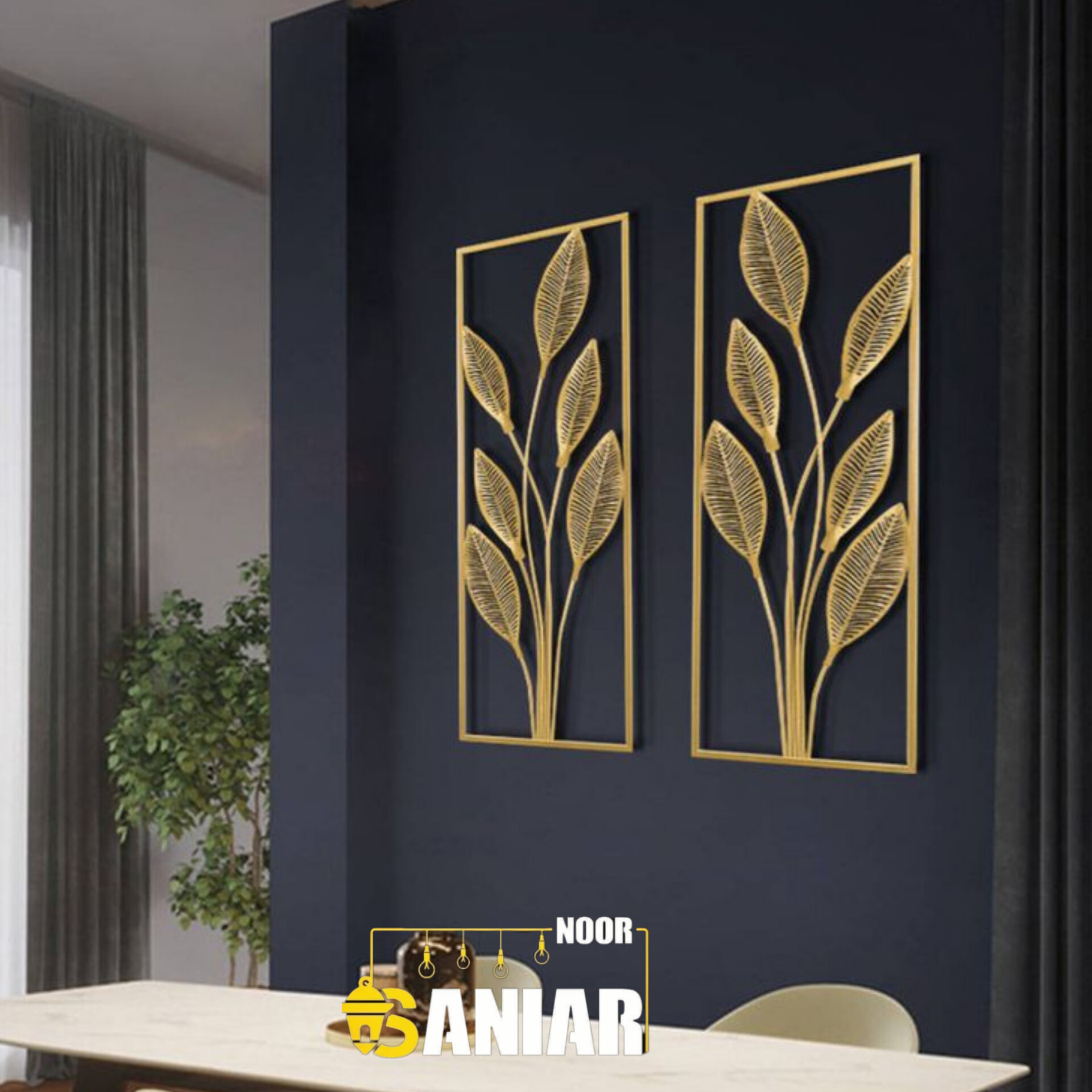 ست ۲ عددی تابلو دکوراتیو لوکس طرح برگهای طلایی