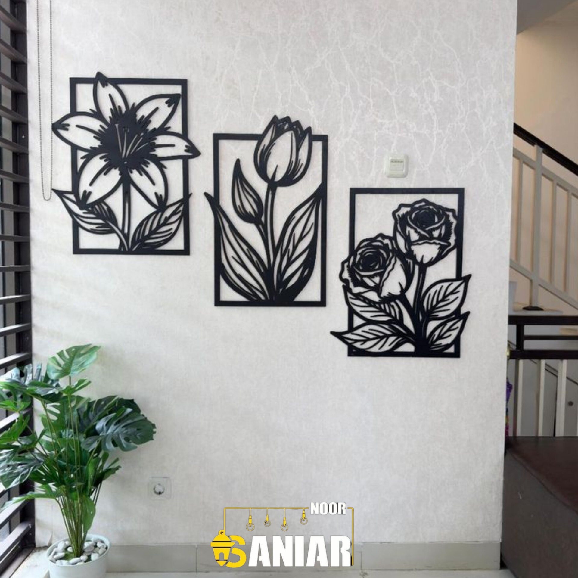 ست ۳ عددی تابلو دکوراتیو طرح گلهای بهاری (ویژه دیوار راهپله و پاگرد)