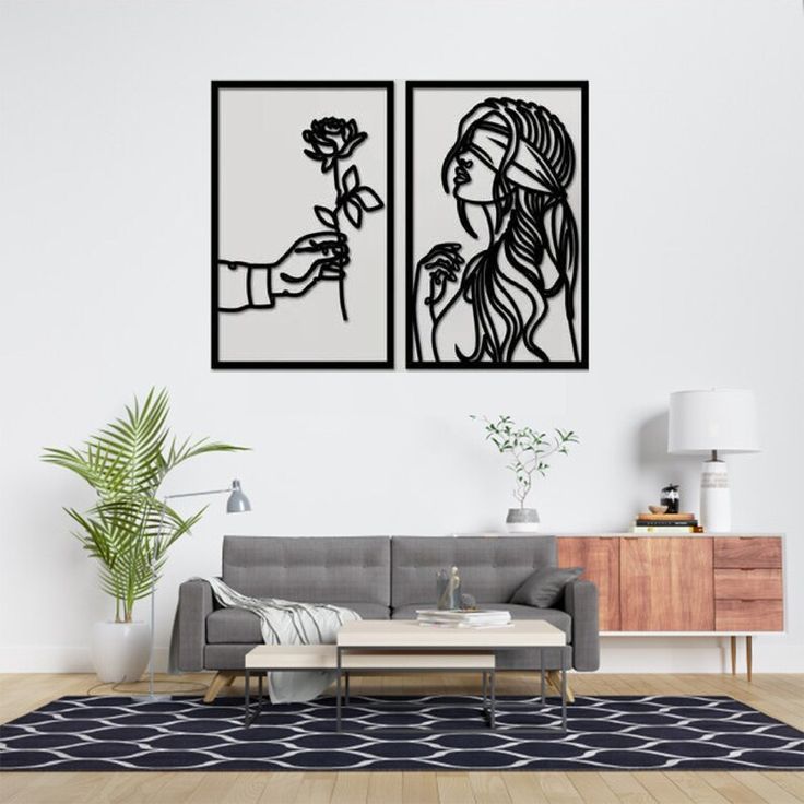ست ۲ تکه تابلو دکوراتیو طرح "افسون و رز" (لاینآرت مدرن برای بالای کاناپه و اتاق خواب)