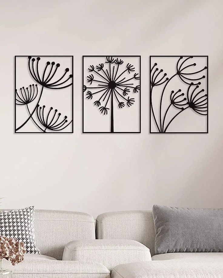 ست ۳ تکه تابلو دکوراتیو طرح "رویای قاصدک" (دیوارکوب مدرن لاینآرت با ابعاد همسان)
