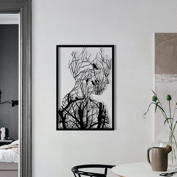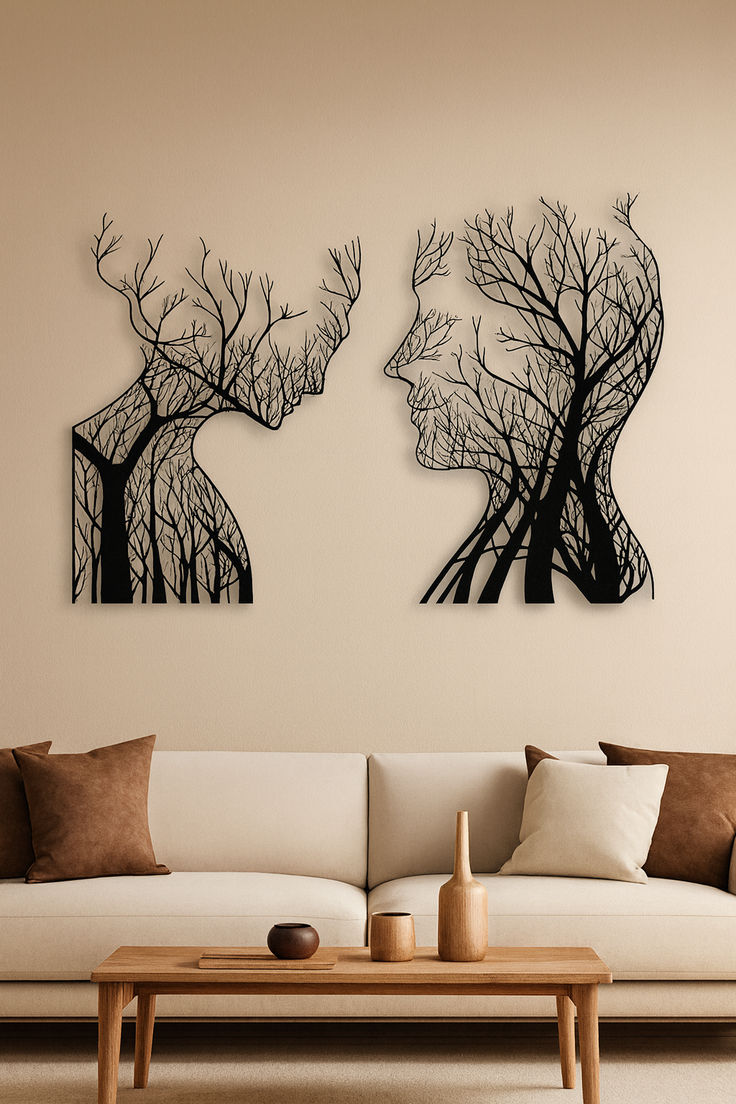 ست ۲ تکه تابلو دکوراتیو طرح "روح طبیعت" (دیوارکوب لاینآرت نیمرخ زن و مرد و درخت)