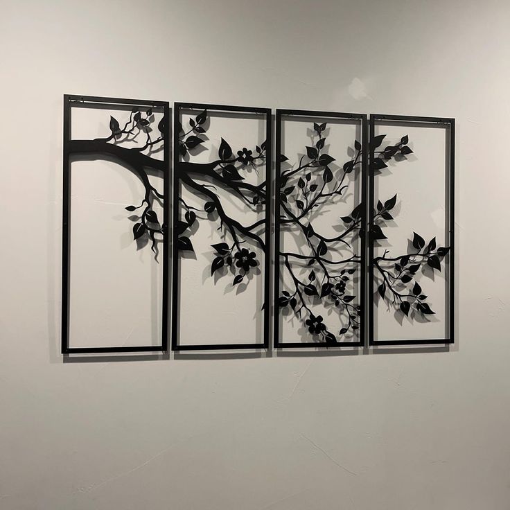 ست ۴ تکه تابلو دکوراتیو طرح "امتداد بهار" (دیوارکوب لاینآرت شاخه ممتد و شکوفه)