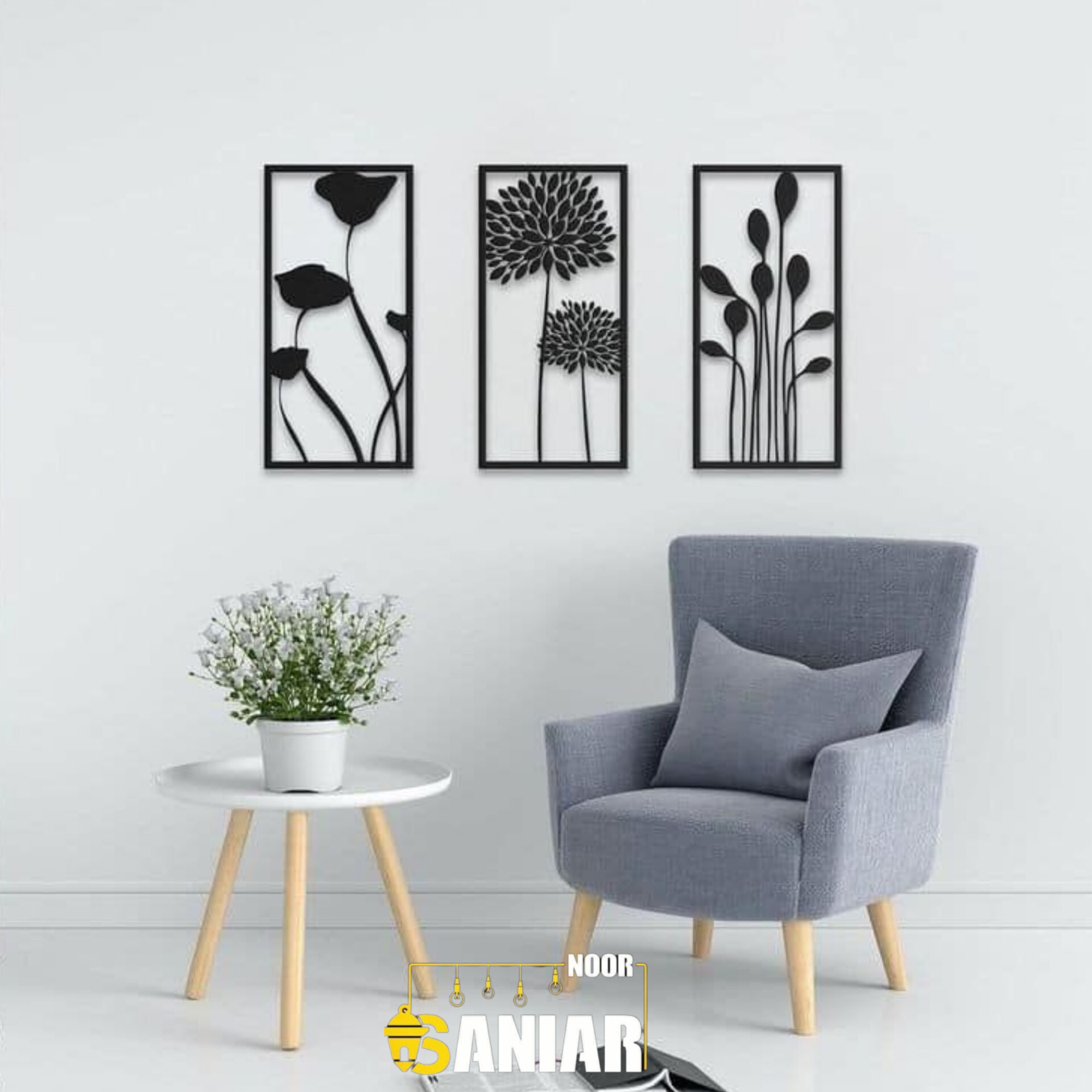 ست ۳ تکه تابلو دکوراتیو طرح "گلستان مینیمال" (دیوارکوب لاینآرت لاله و زنبق)