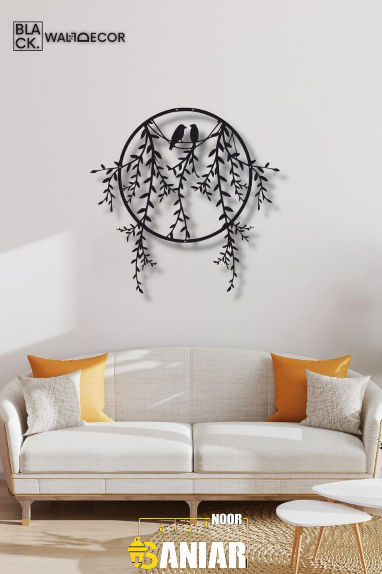دیوارکوب دکوراتیو طرح "آشیانه مهر" (تابلو فلزی دایرهای پرنده و بید مجنون)