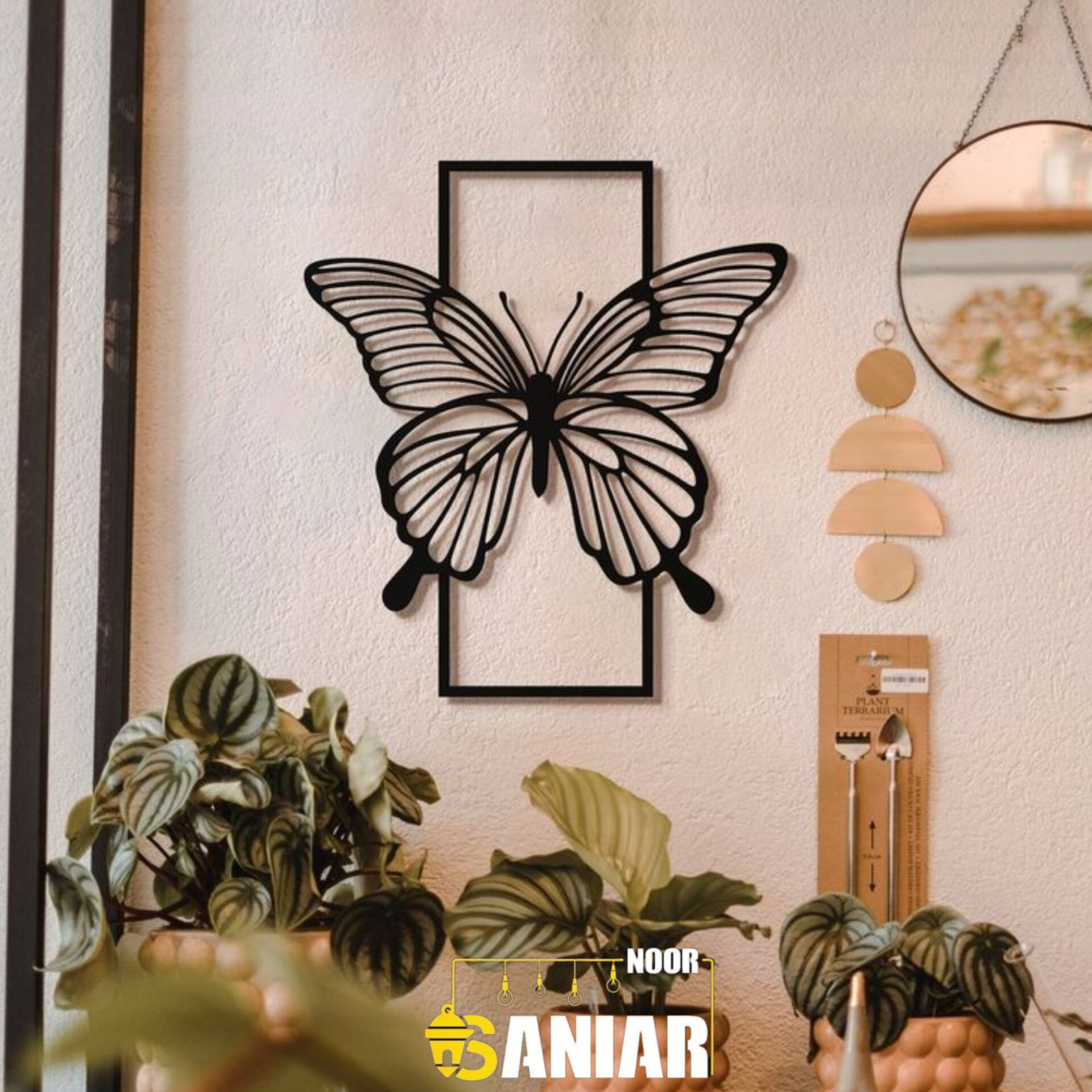 ست ۳ تکه تابلو دکوراتیو طرح "Good Vibes" (دیوارکوب فلزی لاینآرت مدل پروانه)