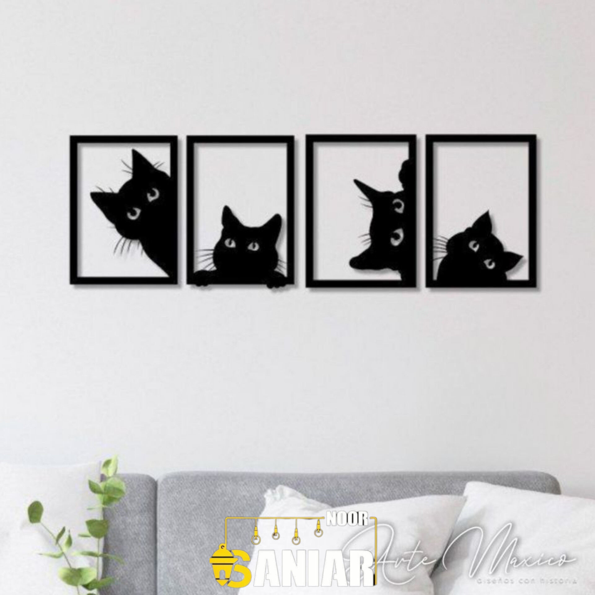 ست ۴ تکه تابلو دکوراتیو طرح "گربههای کنجکاو" (دیوارکوب فلزی فانتزی مدل پیشی)