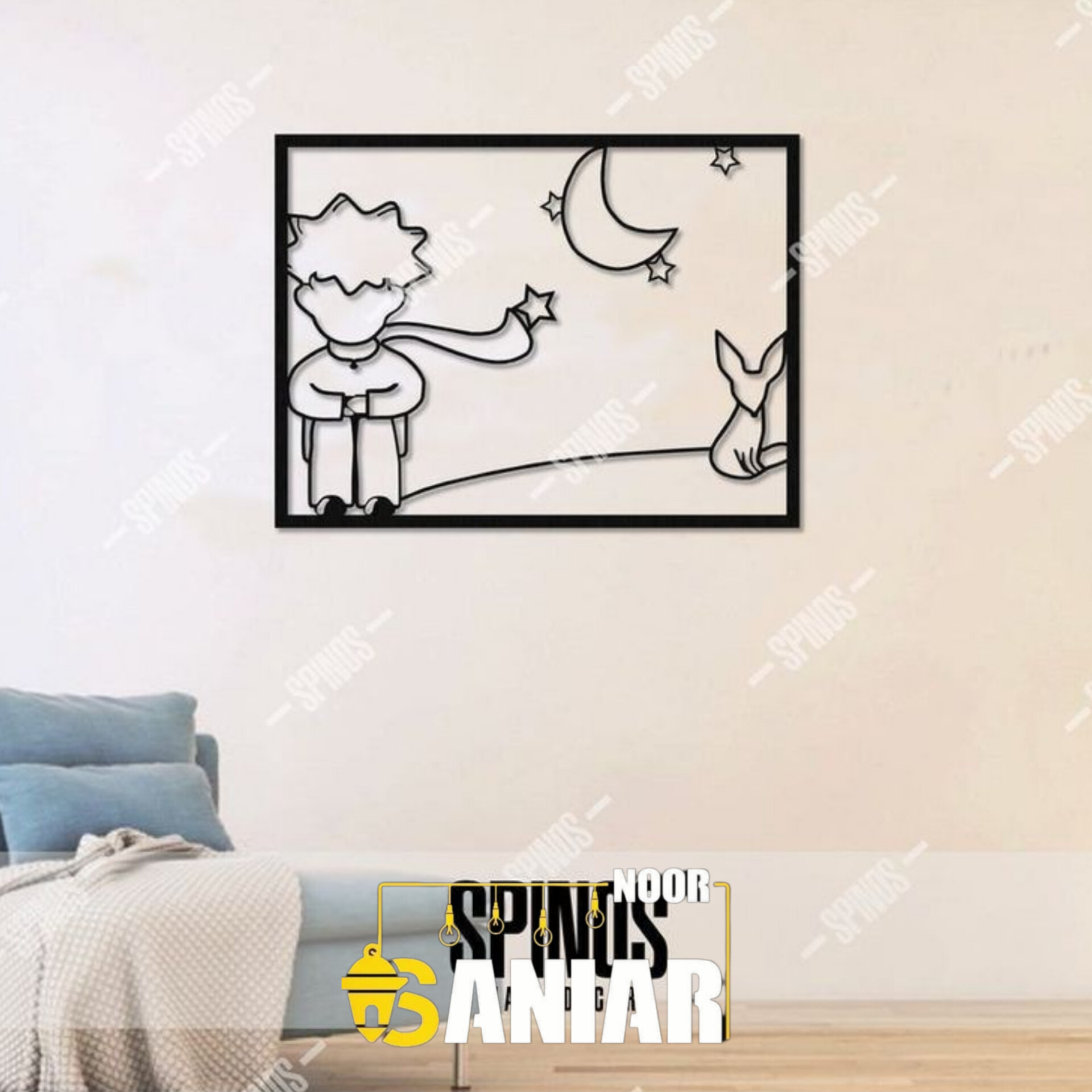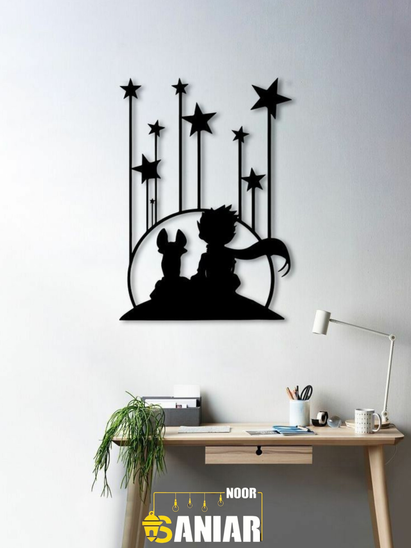 دیوارکوب دکوراتیو طرح "سیاره مهربانی" (تابلو فلزی مدل شازده کوچولو و ستارهها)