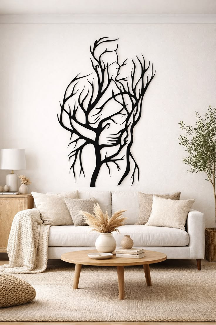 تابلو دکوراتیو مدرن طرح "ریشه در جان" (دیوارکوب لاینآرت تلفیقی رخ و شاخسار)
