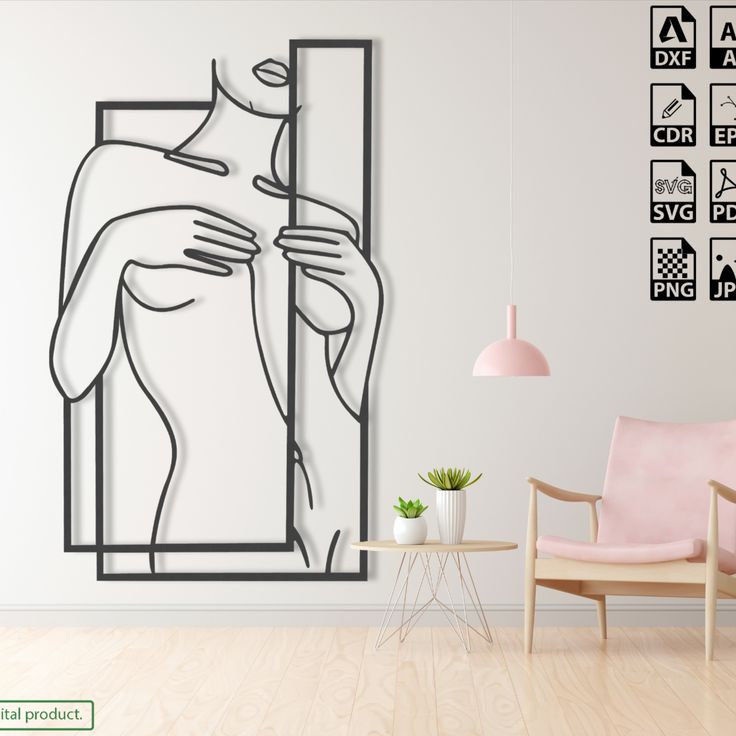 دیوارکوب دکوراتیو طرح "تندیس رهایی" (تابلو فلزی لاینآرت مدل فیگور زن)