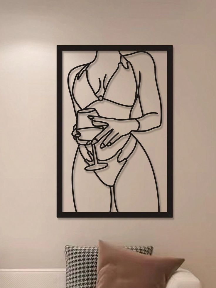 تابلو فلزی طرح "بانوی ساحل" (لاینآرت مدرن بانو و جام)