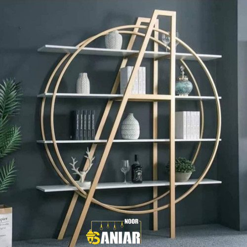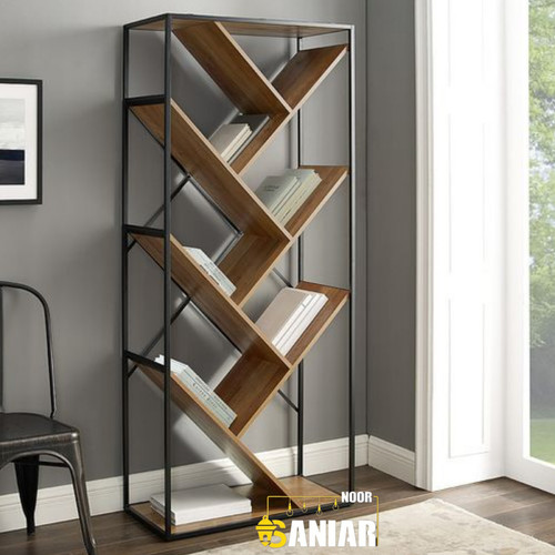 کتابخانه فلزی مدرن طرح زیگزاگی | قفسه دکوراتیو ترکیب فلز و چوب