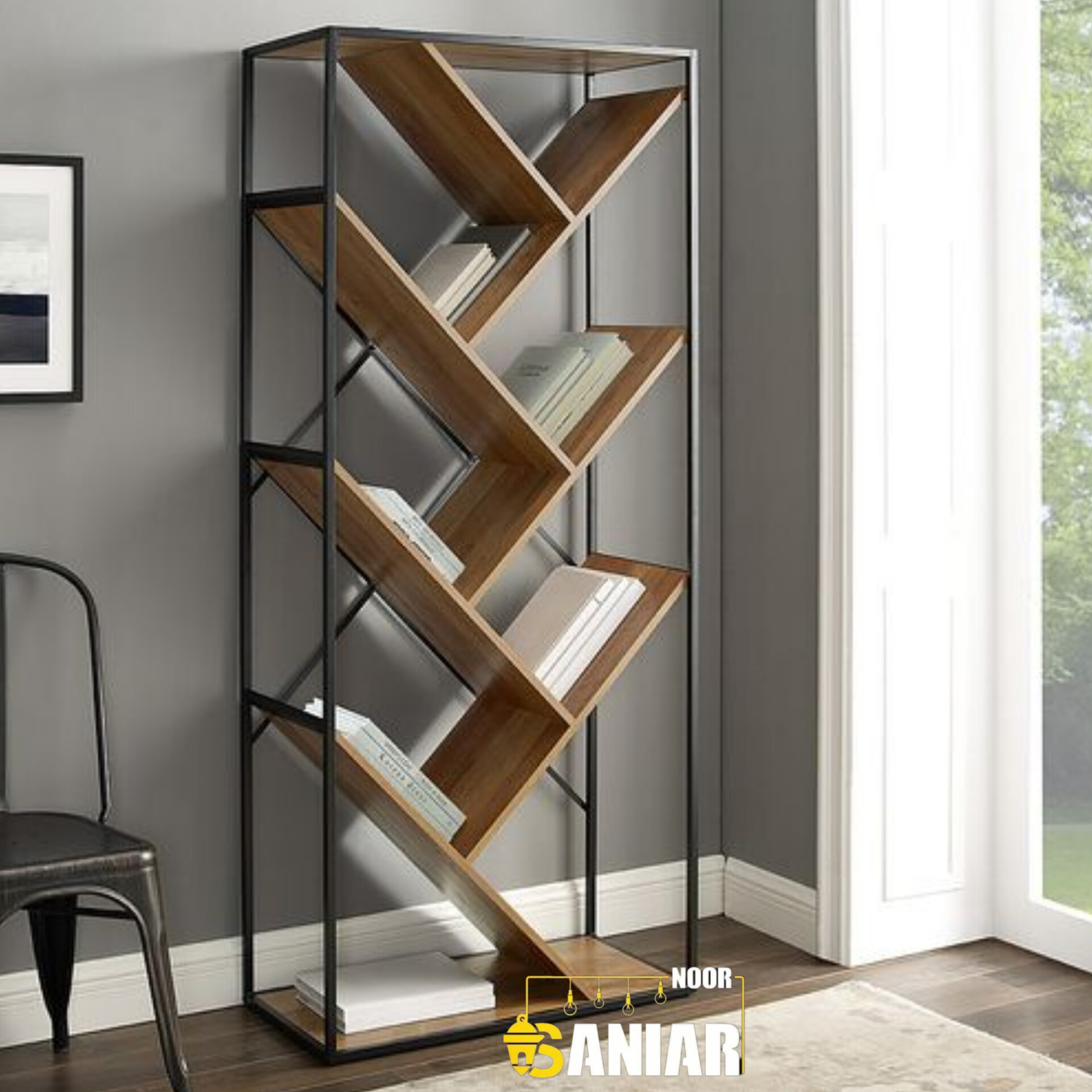 کتابخانه فلزی طرح زیگزاگ | طراحی مدرن، مستحکم و مناسب دکورهای امروزی