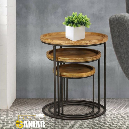 میز عسلی سهتکه فلزی – مدل مدرن با رنگ کورهای