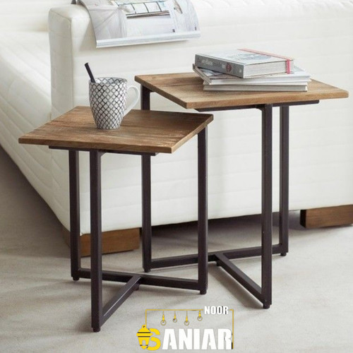 میز عسلی دوتایی مدرن – مدل اسلایدی چوب و فلز
