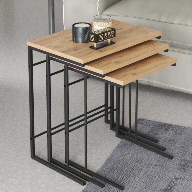 میز عسلی سهتکه فلزی – مدل مدرن با رنگ کورهای