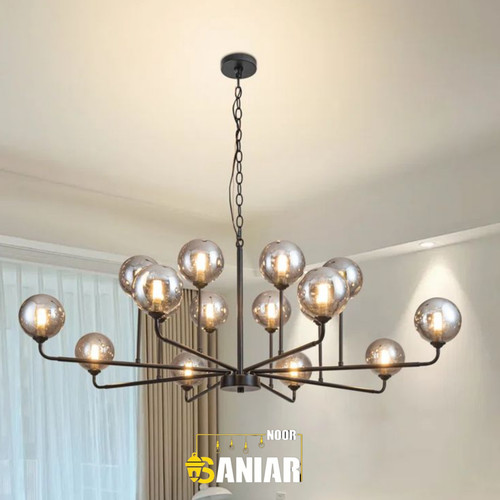 لوستر مولکولی فلزی مشکی ۸ شعله