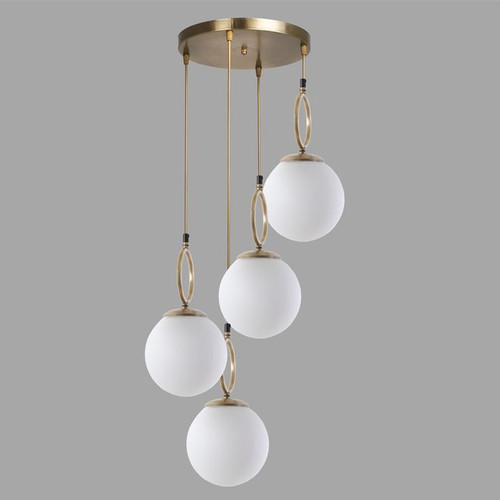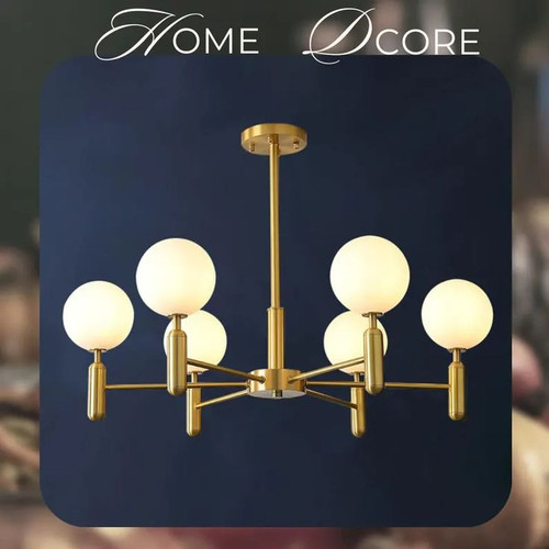 لوستر مولکولی طلایی چند شعله | طراحی لوکس با حبابهای سفید مات