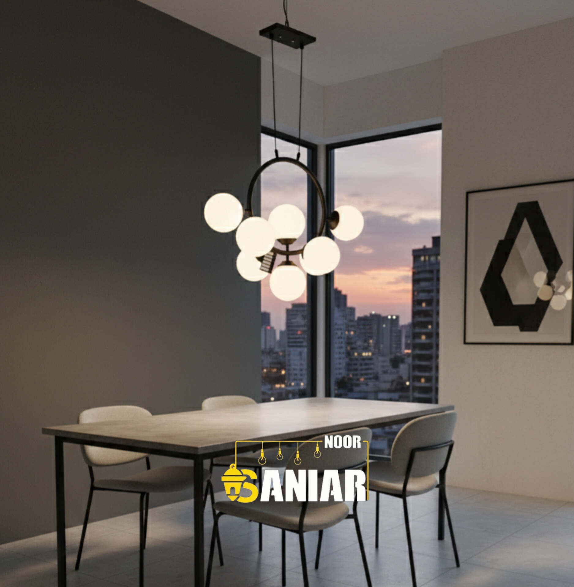 لوستر آویز لاینر مدرن مدل "ترکیبی هندسی" - سانیار نور