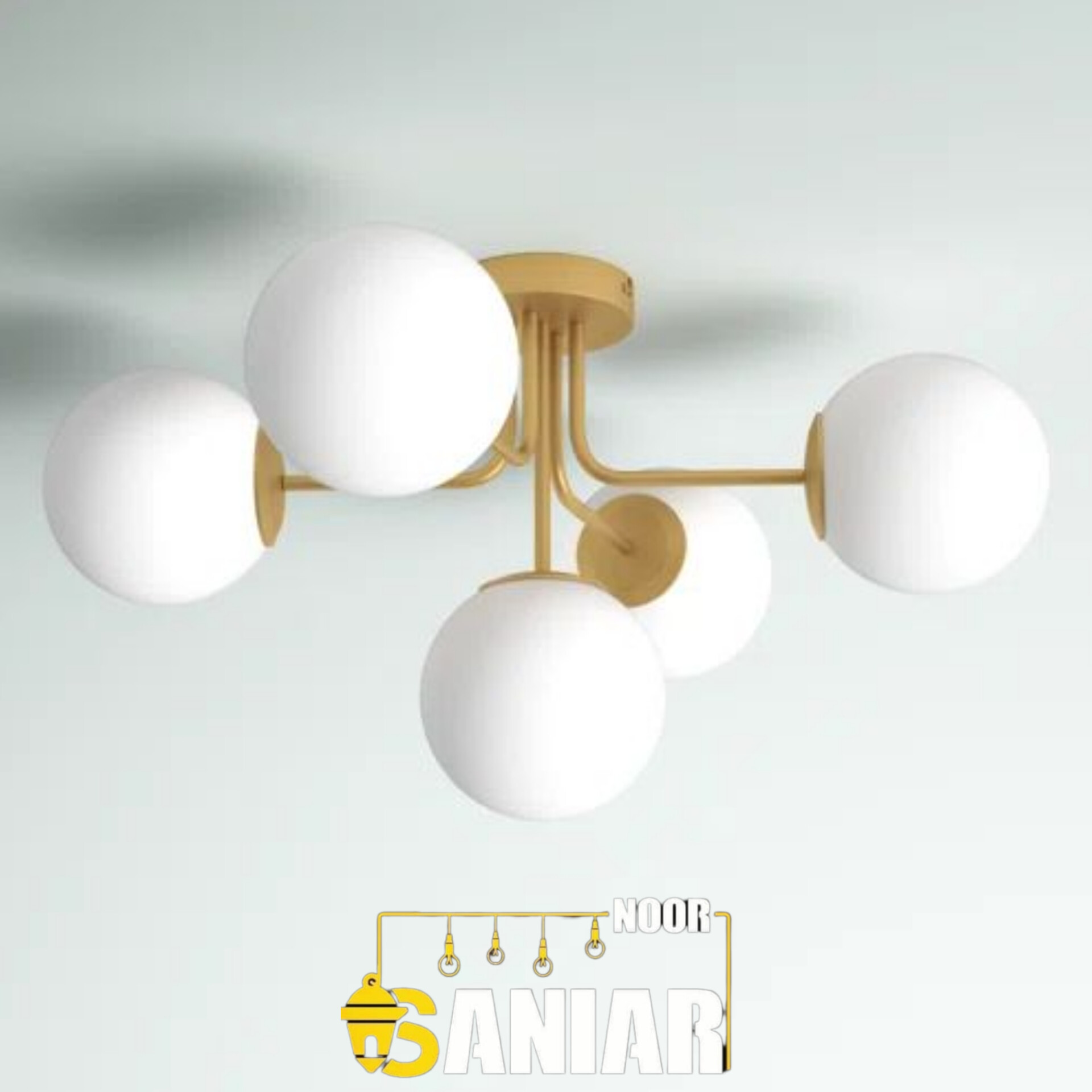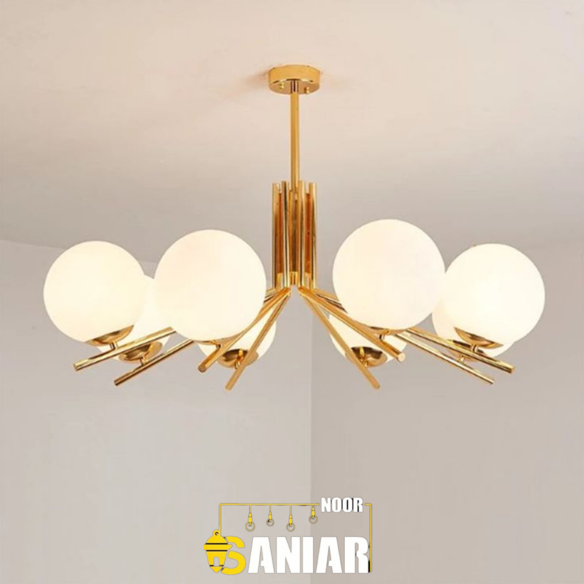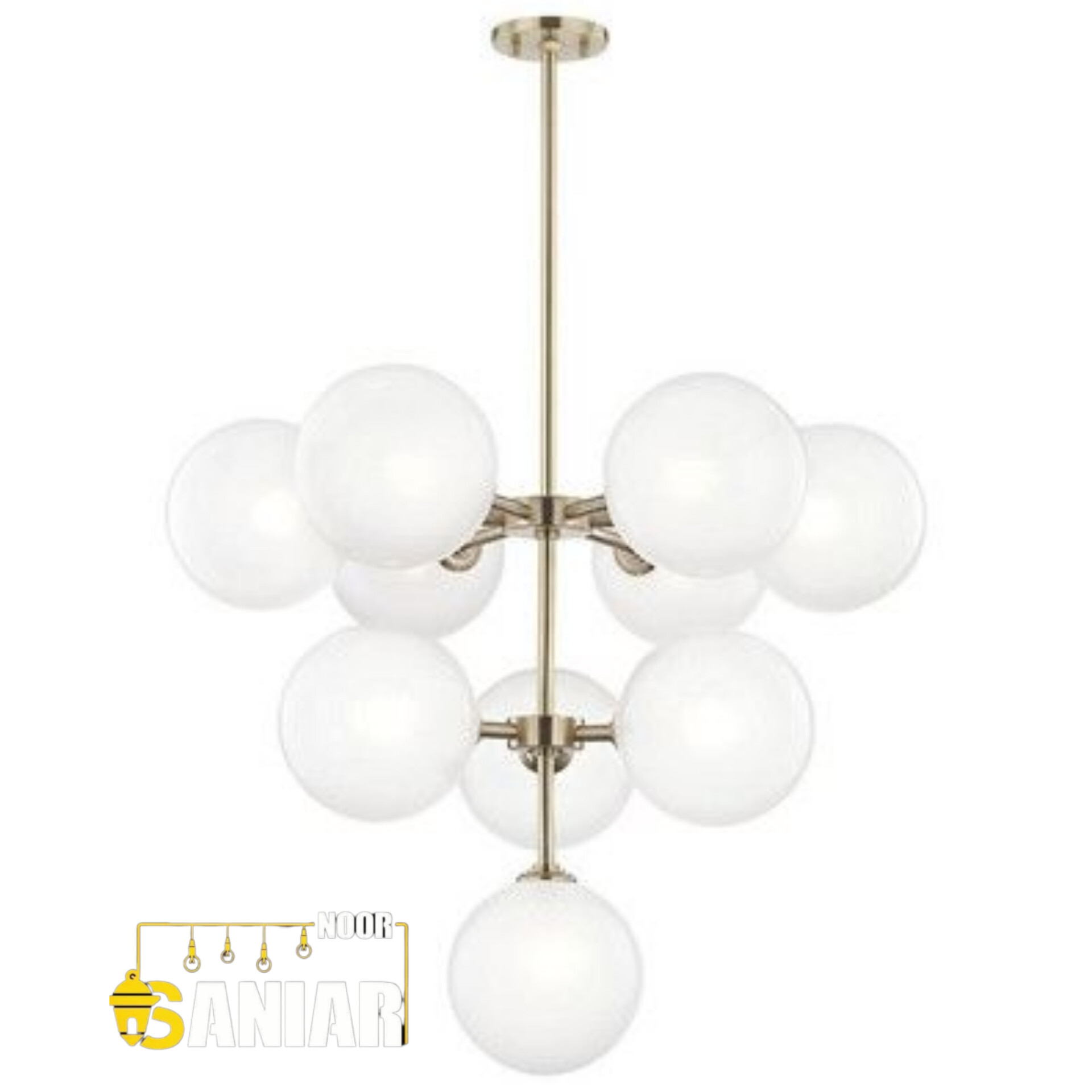 لوستر مولکولی طلایی چند شعله | طراحی لوکس با حبابهای سفید مات