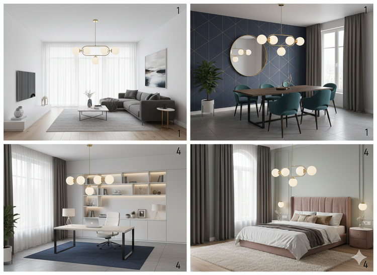پخش نور در این لوستر بهگونهای است که روشنایی مطلوبی در محیط ایجاد میکند بدون اینکه باعث خیرگی شود. ظاهر مینیمال و در عین حال دکوراتیو این مدل، آن را به گزینهای مناسب برای فضاهای مدرن، صنعتی و حتی نئوکلاسیک تبدیل کرده است.