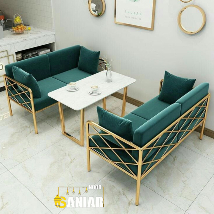 ست مبلمان۴ نفره ی فلزی مدرن لوکس | فریم طلایی با نشیمن پارچه‌ای