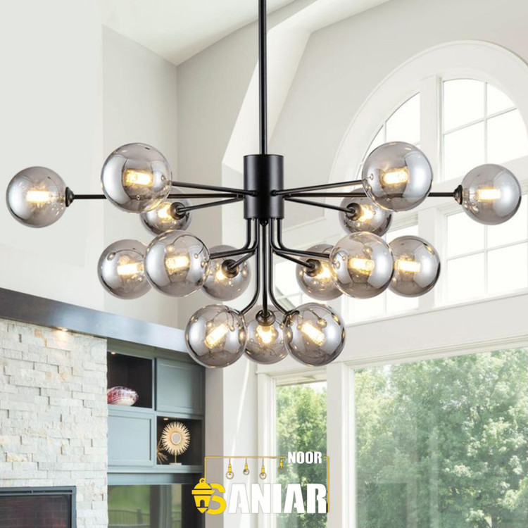 ساختار کروی این لوستر باعث میشود در فضاهای بزرگ و سقفهای متوسط تا بلند، جلوهای مجسمهمانند و دکوراتیو داشته باشد. بدنه فلزی مقاوم در کنار طراحی مولکولی خاص، این مدل را به انتخابی مناسب برای پذیراییهای مدرن، نشیمنهای بزرگ و فضاهای لوکس تبدیل کرده است.