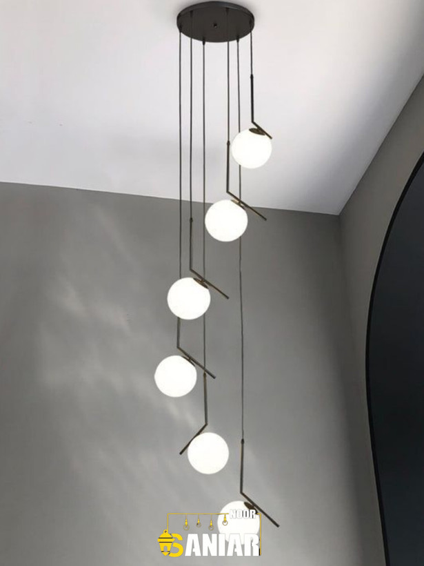 لوستر مولکولی بلند یکی از بهترین انتخابها برای فضاهای سقفبلند، راهپلههای دوبلکس، لابیها و پذیراییهای بزرگ است. طراحی شاخهای همراه با حبابهای کروی باعث میشود نور بهصورت زیبا و یکنواخت در محیط پخش شود.