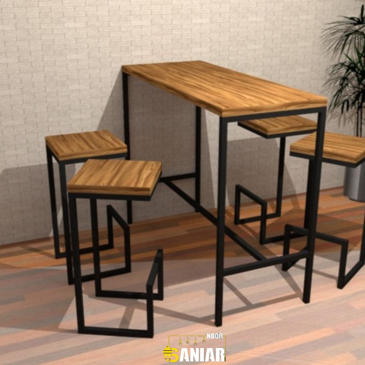 میز ناهارخوری مدرن با ترکیب چوب طبیعی و پایه فلزی، مناسب فضاهای کافهای و منزل. طراحی خاص، مقاوم و قابل سفارشیسازی با برند سانیار نور.
