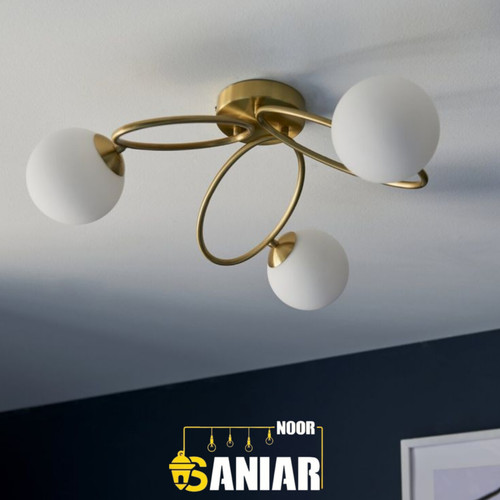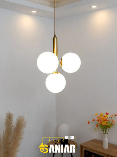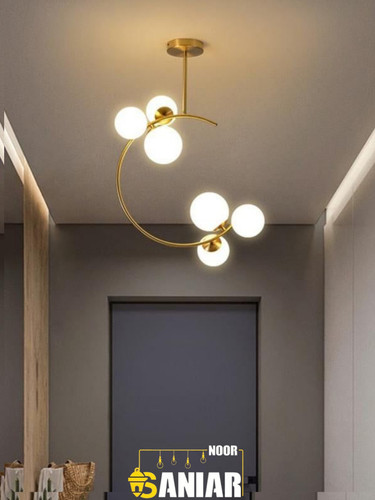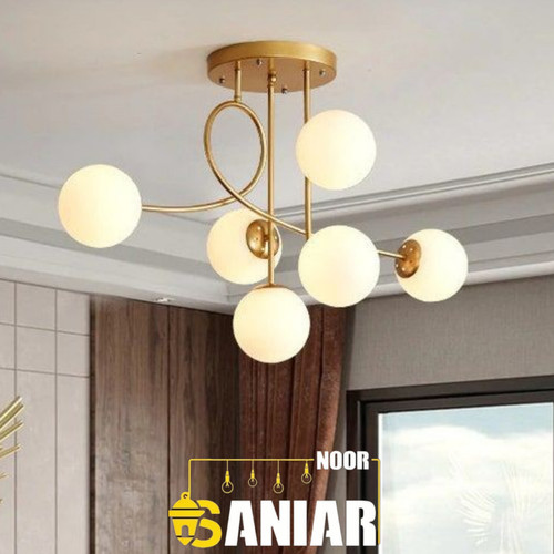 لوستر مولکولی طلایی چند شعله | طراحی لوکس با حبابهای سفید مات