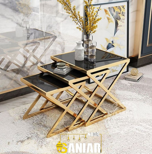 میز عسلی سهتکه فلزی – مدل مدرن با رنگ کورهای