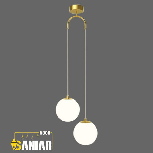 لوستر مولکولی دو شاخه مدرن | گوی شیشهای مات و بدنه طلایی