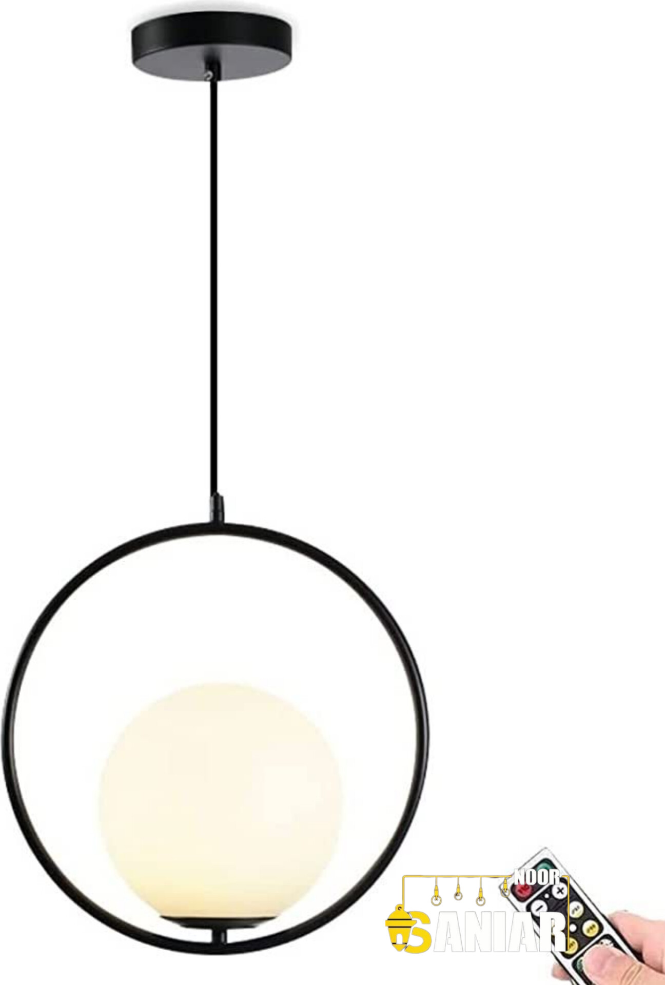 لوستر مولکولی تکشعله مدرن | گوی شیشهای مات و بدنه فلزی
