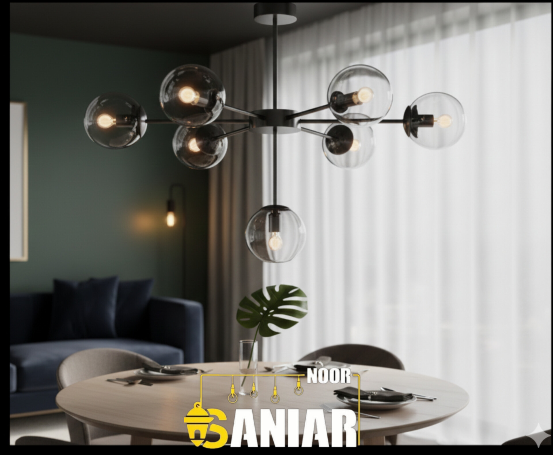 لوستر مولکولی فلزی مشکی ۸ شعله