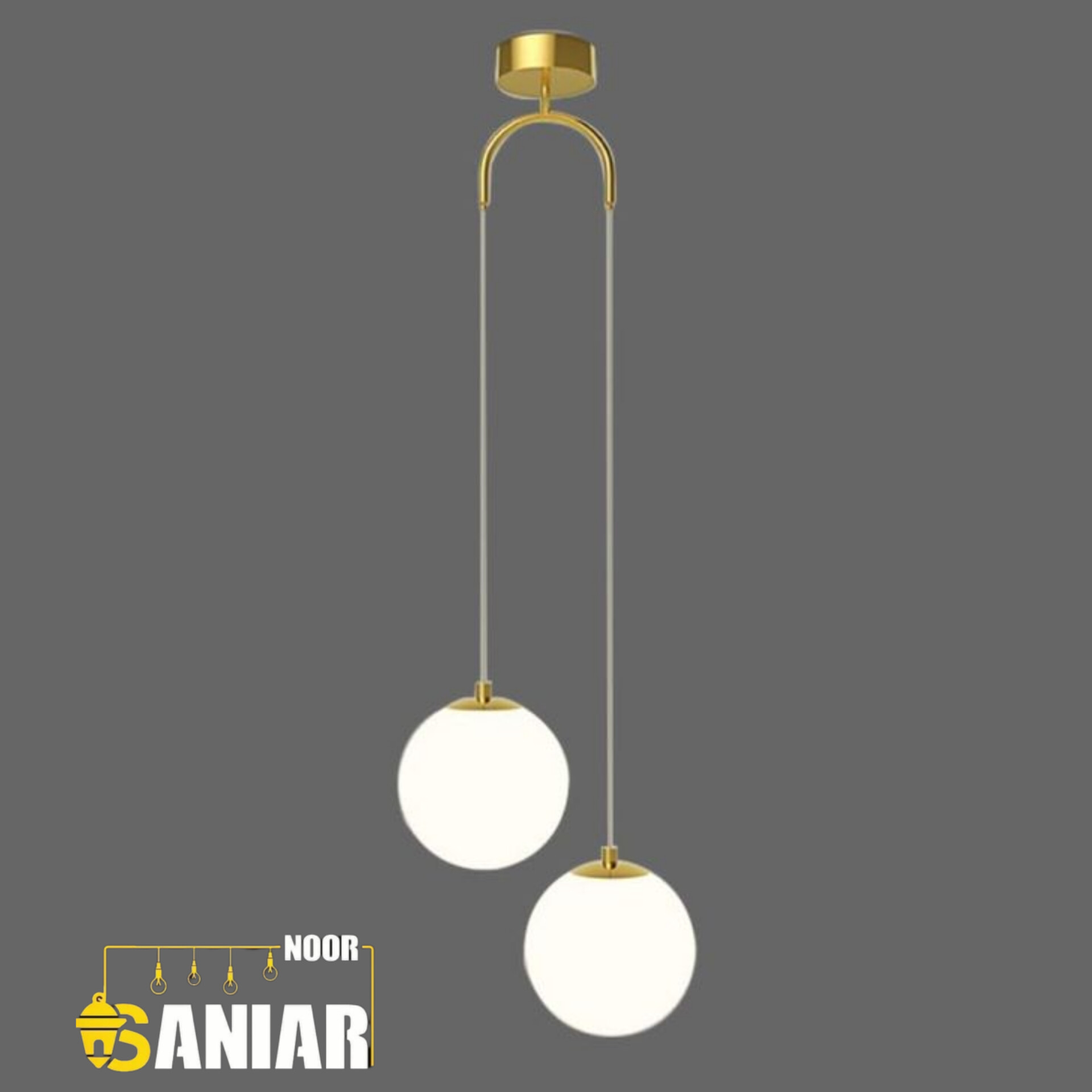 لوستر مولکولی دو شاخه مدرن | گوی شیشهای مات و بدنه طلایی